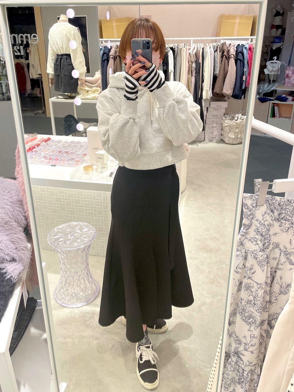 なつみのパーカー「カレッジスタイルにおすすめ。NCロゴ刺繍ショートパーカー」を使ったコーディネート