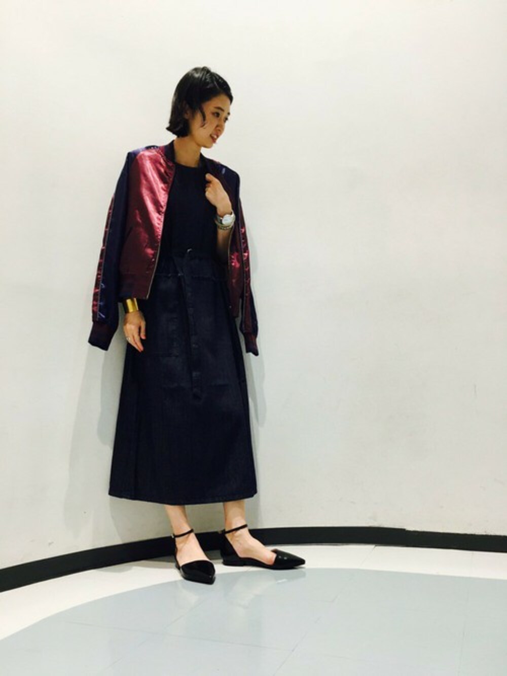 bayamaのワンピース「KBF ソフトデニム2WAYワンピース」を使ったコーディネート