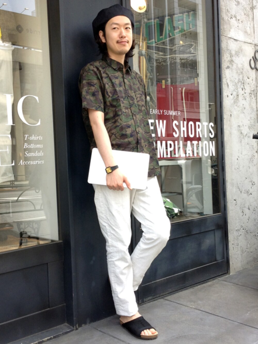 本日もカモ柄を着てみました。 全体的に麻ものを着てサンダルでさらに夏をイメージしラフさを出してみました。