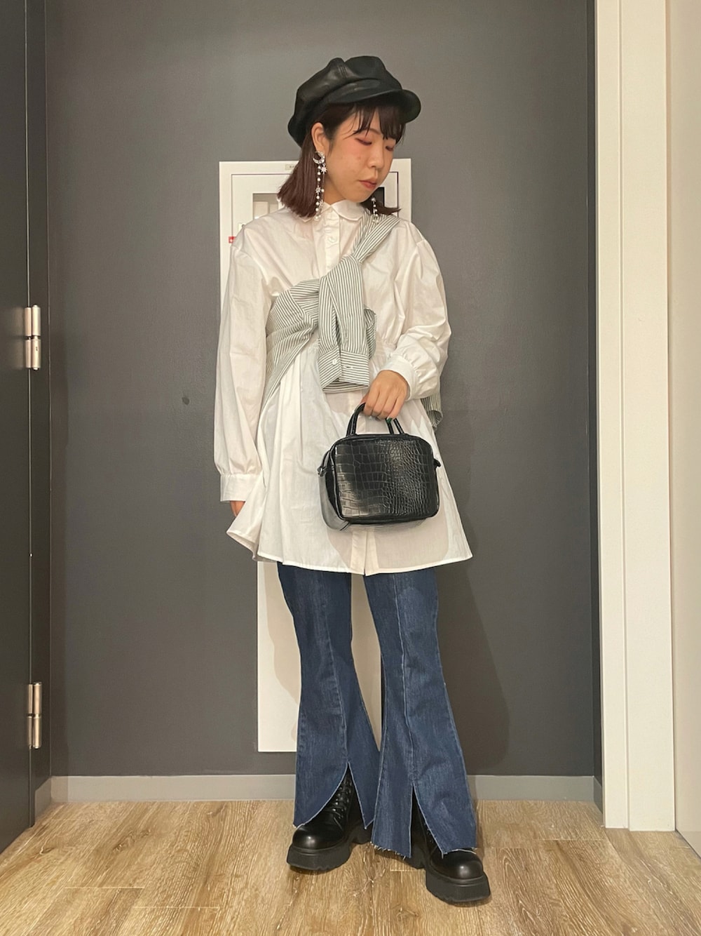 シャツのたすき掛けは、ウエスト位置を高くみせてくれるので、スタイルよくみせてくれる神🥲