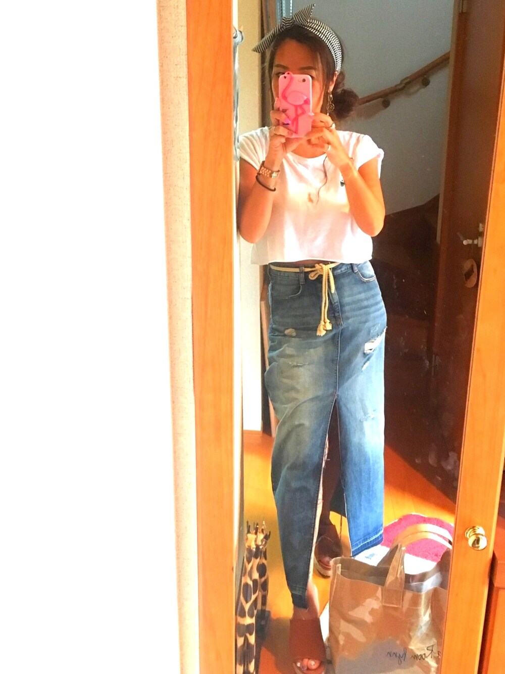 デニムスカートは、後ろもざっくりスリット入っててお気に入り🌞