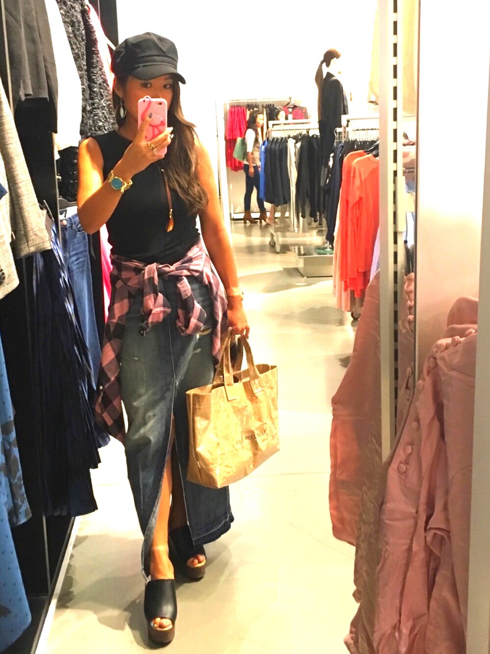 チェックのシャツはH&Mのkids❤️ ZARAのデニムスカートは、前、後ろ両方深めのスリット入っててめちゃ可愛い〜😂❤️