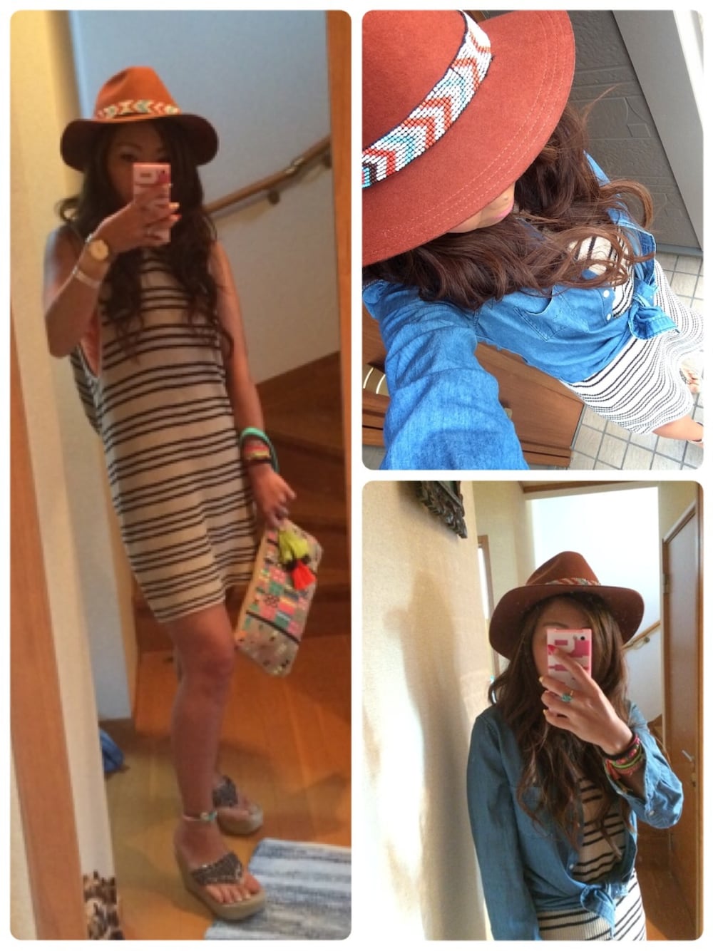 今日は、友達がお誕生日のお祝いをしてくれます♡ ハットもニットワンピもクラッチも、ハワイで購入〜♡w このニットワンピ、フード付♡w