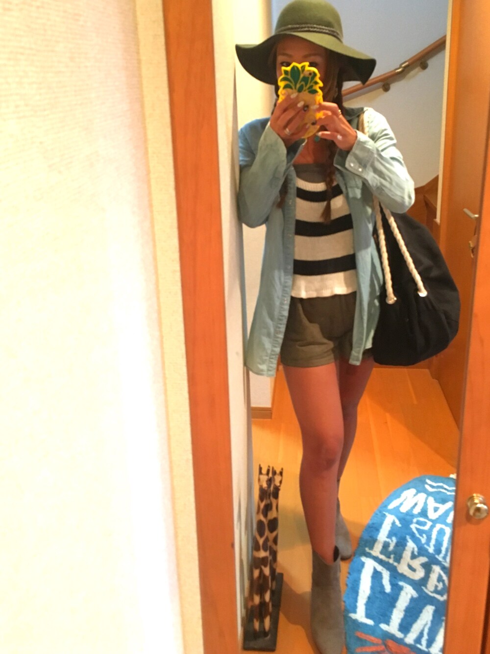 ハットは自分で革ひも巻いてアレンジしました☻