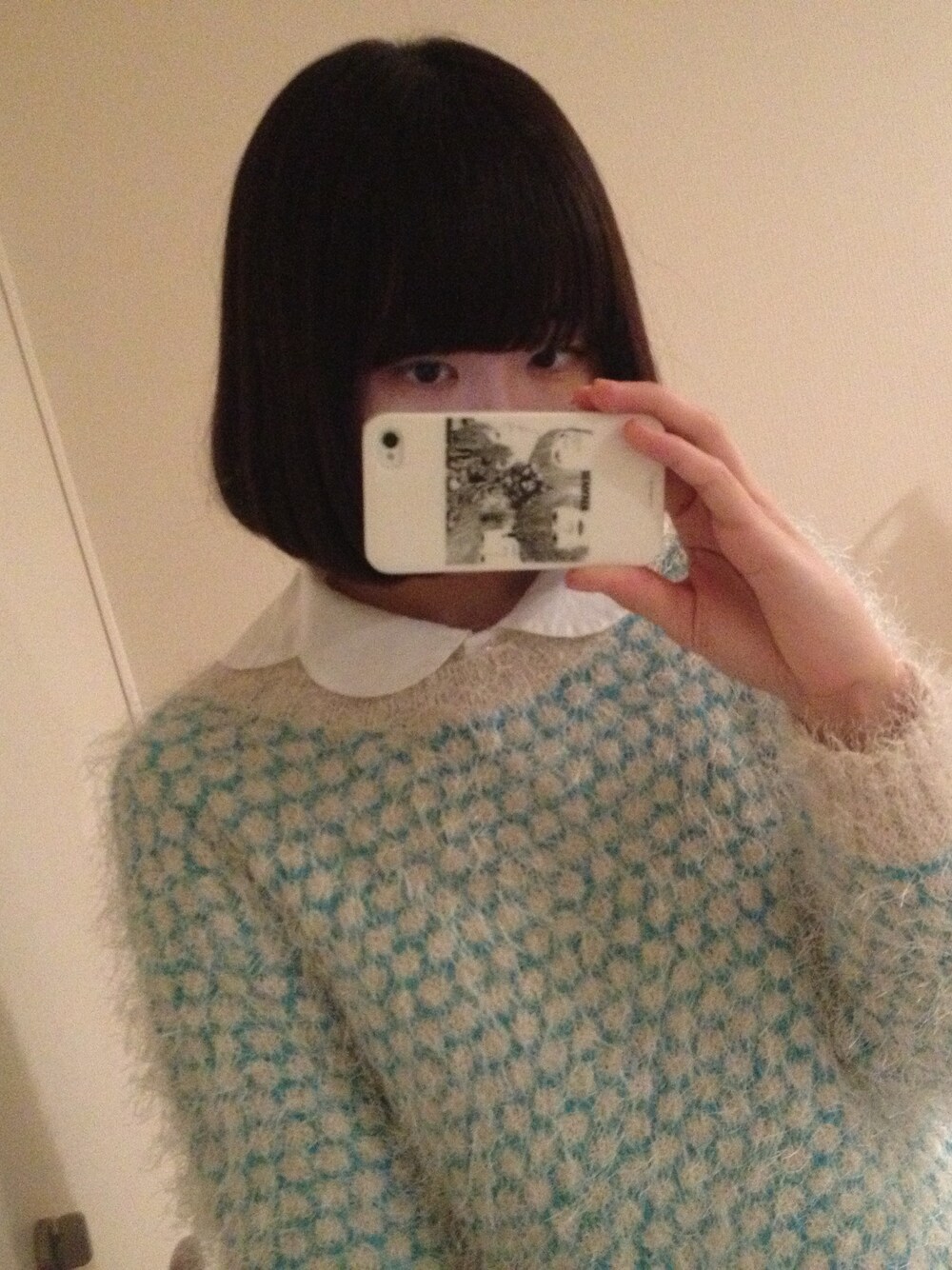 ブルー系のニット/セーターを着用したレディースの冬コーディネートの1枚目の写真