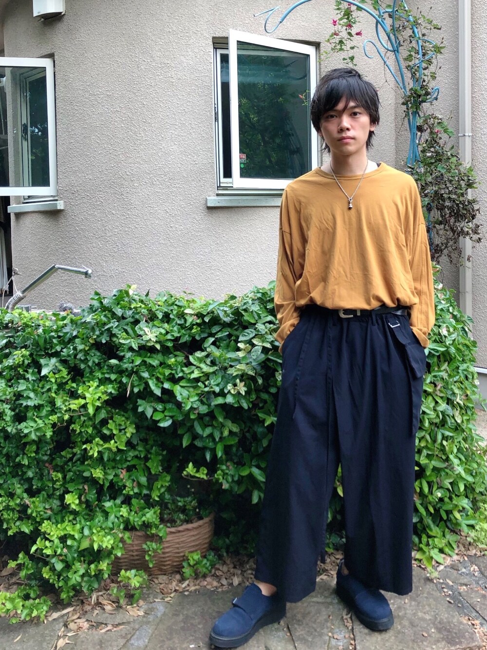 今年の夏は、ワイドシルエットのラップパンツに初チャレンジしました! アシンメトリーのデザインがお気に入りです! インナーはダークオレンジのワイドカットソーをタックイン! これも人生初チャレンジのコーディネートになります(笑) ウエスタンベルトとストラップシューズも、ワイドパンツのカラーに合わせてネイビーで統一しました。 タックインも含めて初めてだらけのコーディネートでしたが、新しい組み合わせを日々見つけて楽しんでいます!
