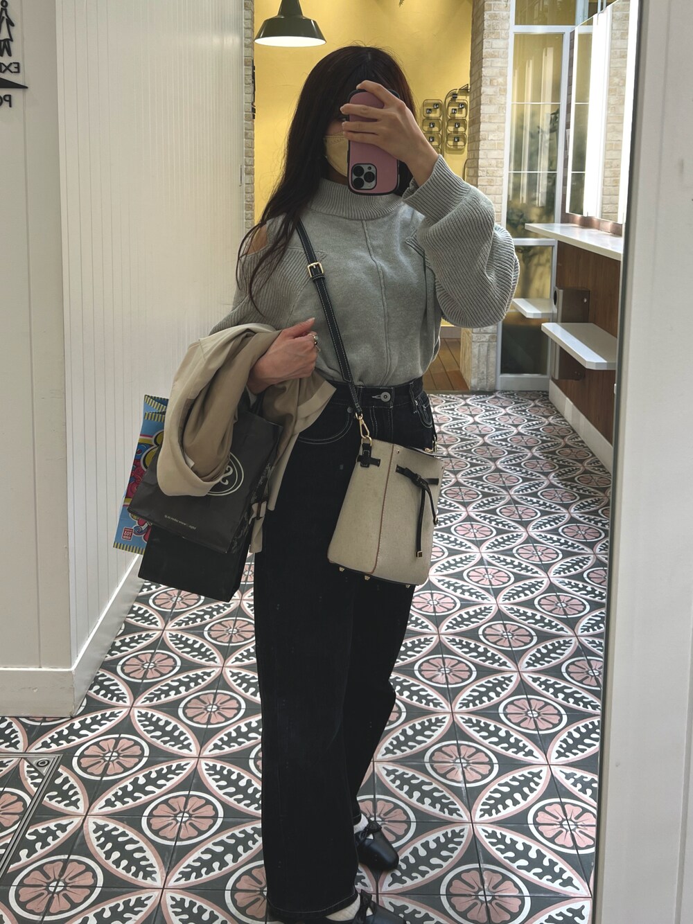 chicoのあざとニットシリーズ大好きで去年くらいから多色買いしてる ほんとはこれもピンクが欲しいけどまだ買ってないです😥 デニムはapres jourのブラック。これまた多色買いしてるやつです!自分は下半身、特にお尻が気になるけどこれは気になるところをカバーしながら履けるのでお気に入りです