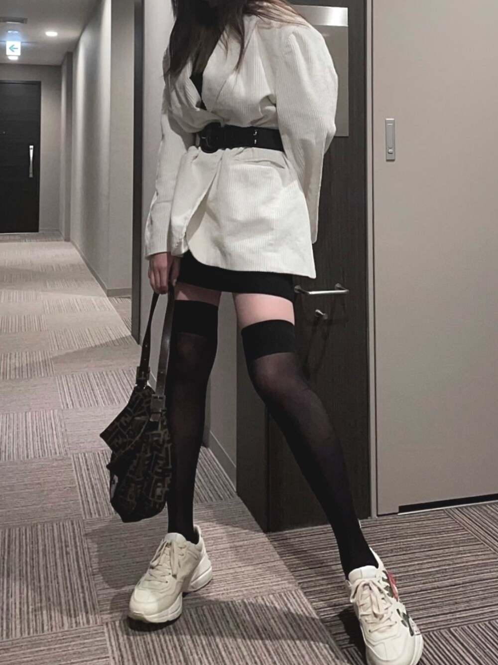 ジャケットにベルトを着けるのも 違った感じを楽しめておすすめです🤍🤍 中にはハイネックワンピースを着てて 全体的には黒で包まれてますが、 アウターとスニーカーに白を入れることでハッキリとしたコントラストになります⚫️⚪️⚫️⚪️ 黒のニーハイを履いて、中のワンピースと近くに見せることで背も脚も長く見せれます。オススメ❕🤞🏻 さらにベルトをつけることでよりロング脚に。。 Instagramにて画像内のジャケット 新品未使用を一着販売する予定です 💞送料込6,000 気になる方はフォローお願いします🥽 いんすた/ @celebaby.jp