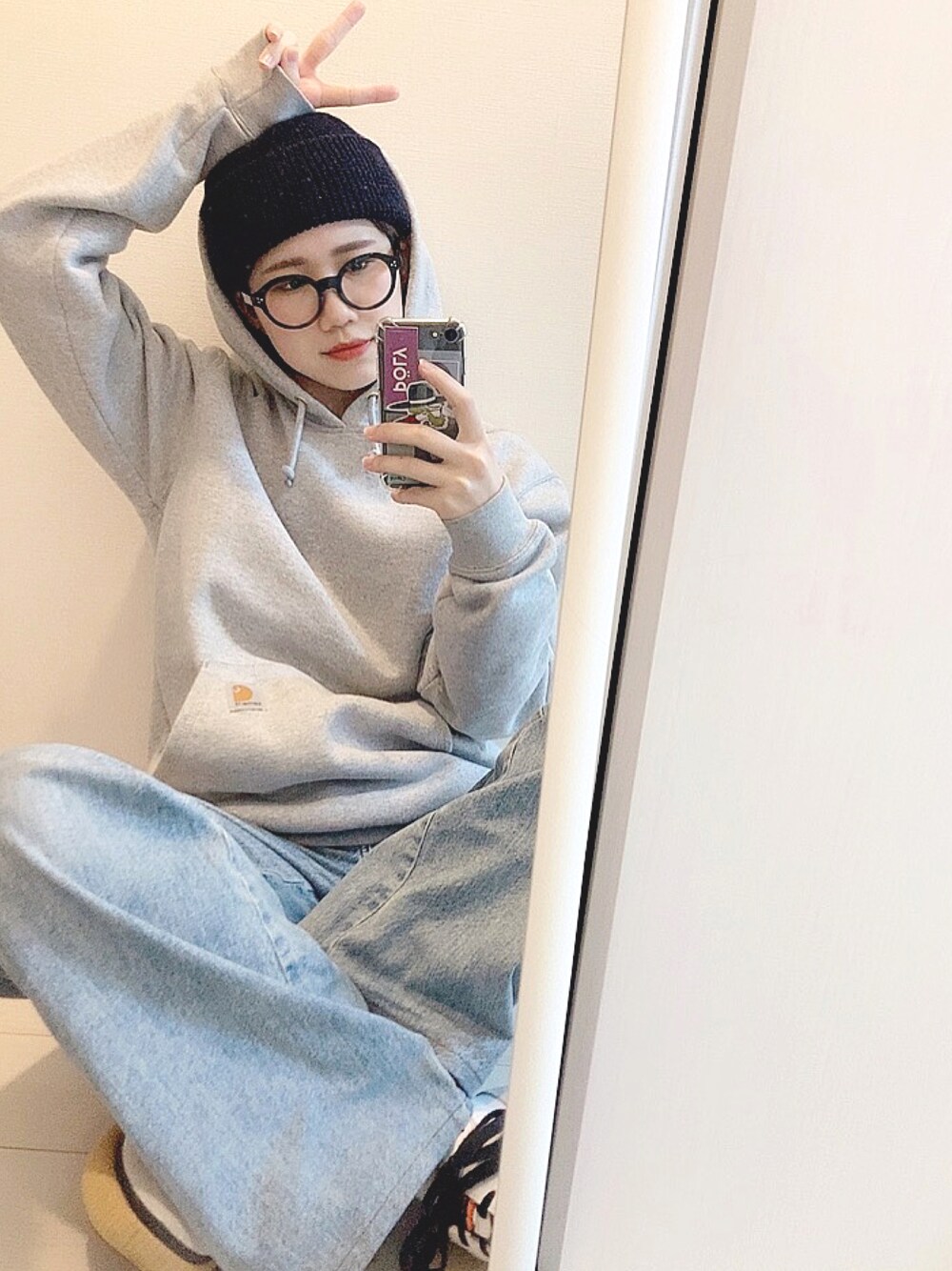 ほのかのパーカー「carhartt(カーハート) Loose Fit Midweight Hooded Sweatshirt オーバーサイズ プルオーバーパーカー カンガルーポケット ワンポイント ミニロゴ ユニセックス」を使ったコーディネート