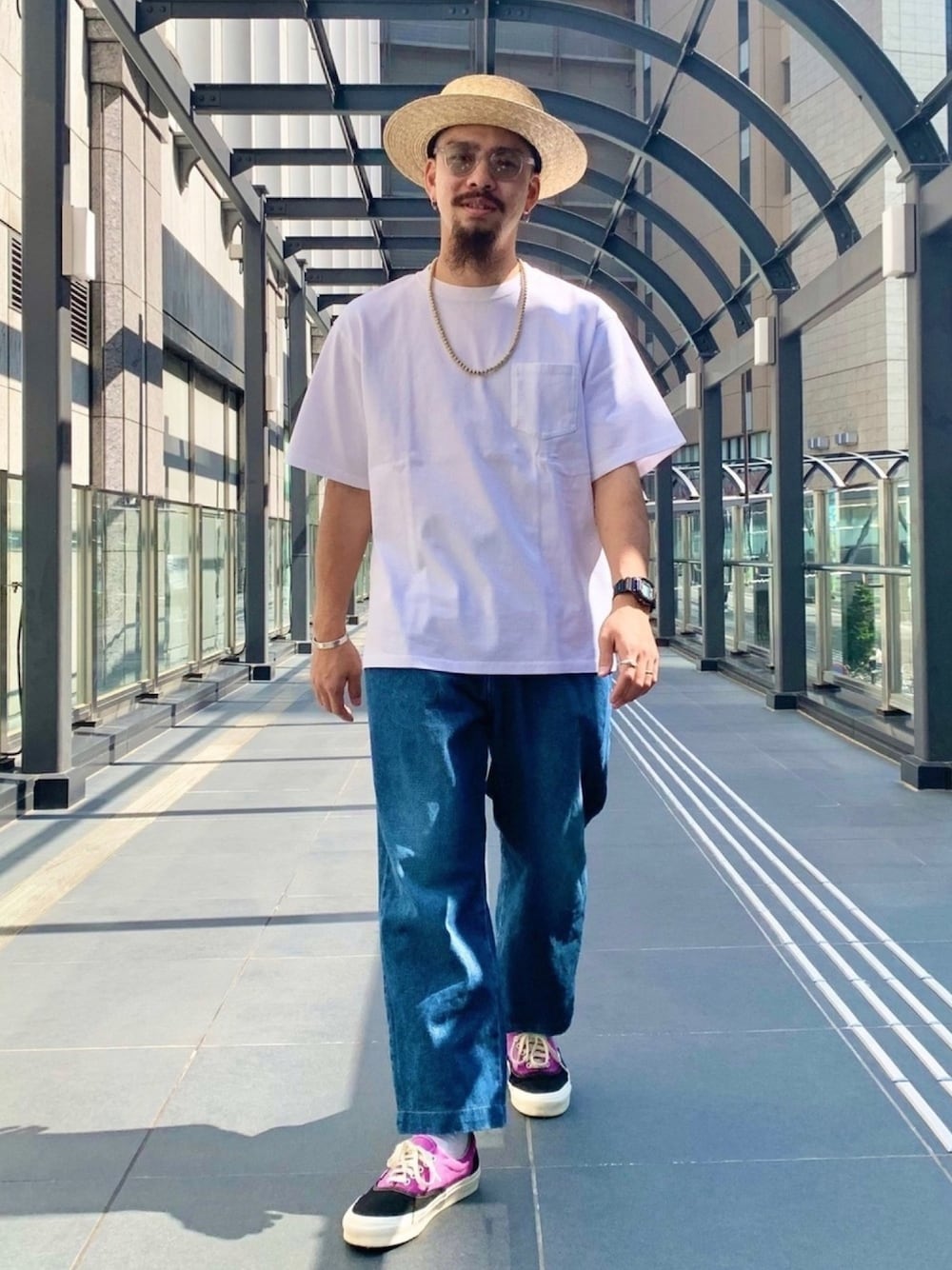ボンタンデニムに白Tを合わせた シンプルなコーディネートです。 ハット被ったり、アクセサリー付けたりすると映えますね。 instagram→@bbbbb0514