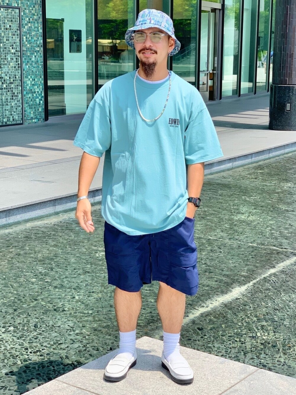 ブルーとホワイトでまとめました💎 パールのネックレスで上品さを出しました。 ネイビーのアイテム使うと少し大人っぽくなると 勝手に思ってます。 ショーツもTシャツも店頭でも取り扱いあるのでお問い合わせ下さい。 instagram→@bbbbb0514