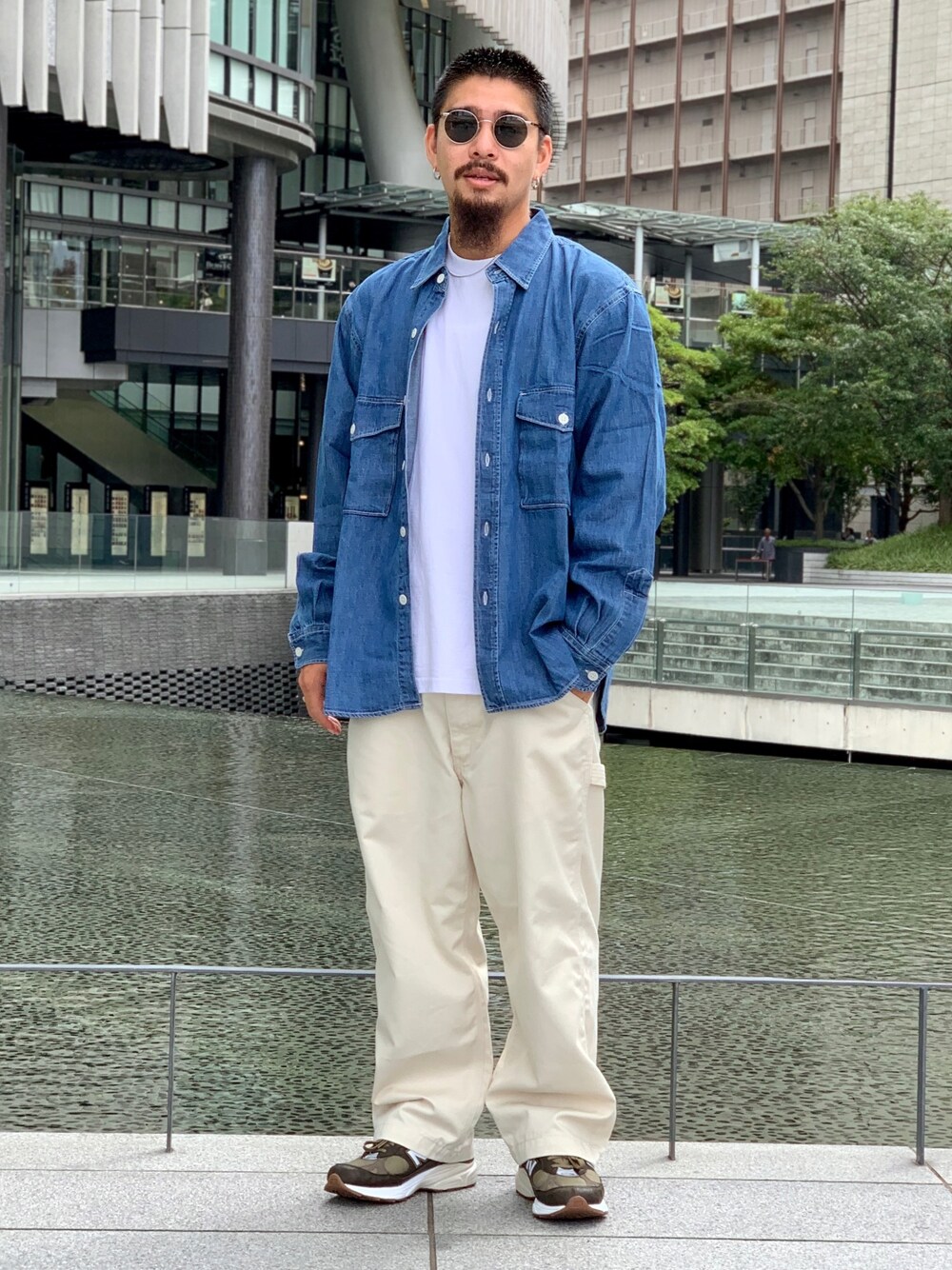ホワイトパンツにデニムシャツ instagram→@bbbbb0514