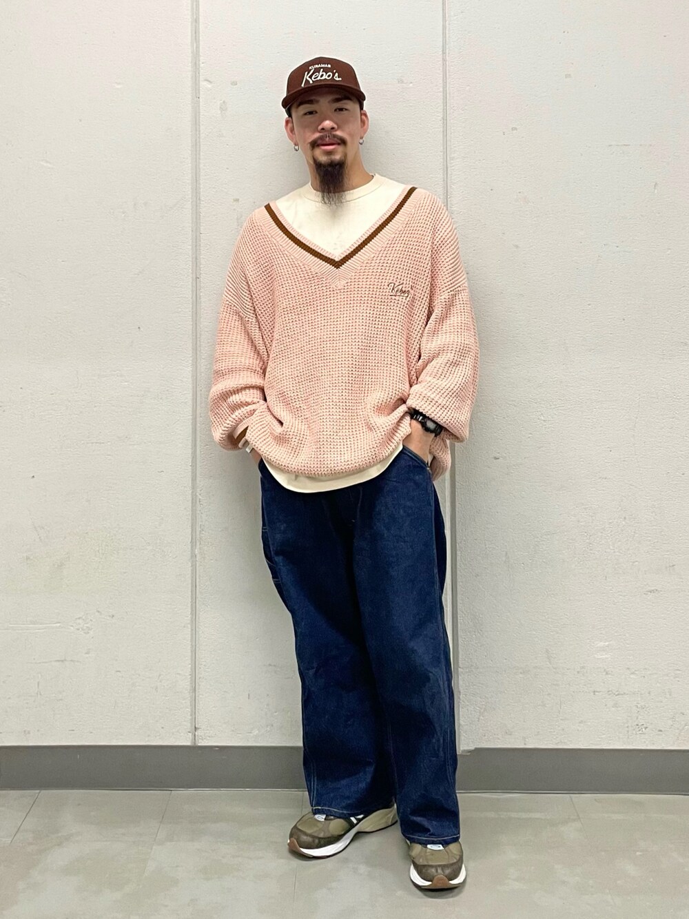 HOOD HAT 【BROWN】 VNECK LINE SWEATER【PINK】XL
