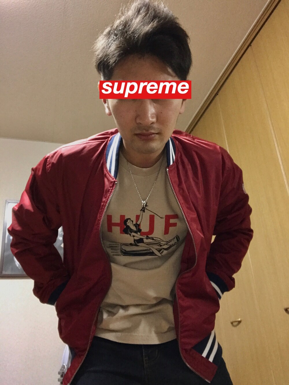 赤のスタジャン持ってなかったので買いました。最近、AVIREXにハマり中!