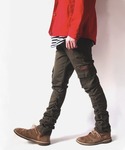 BEATJIVEのカーゴパンツ「スリムスキニーシルエットサイドギャザーシャーリングカーゴパンツ メンズ」を使ったコーディネート