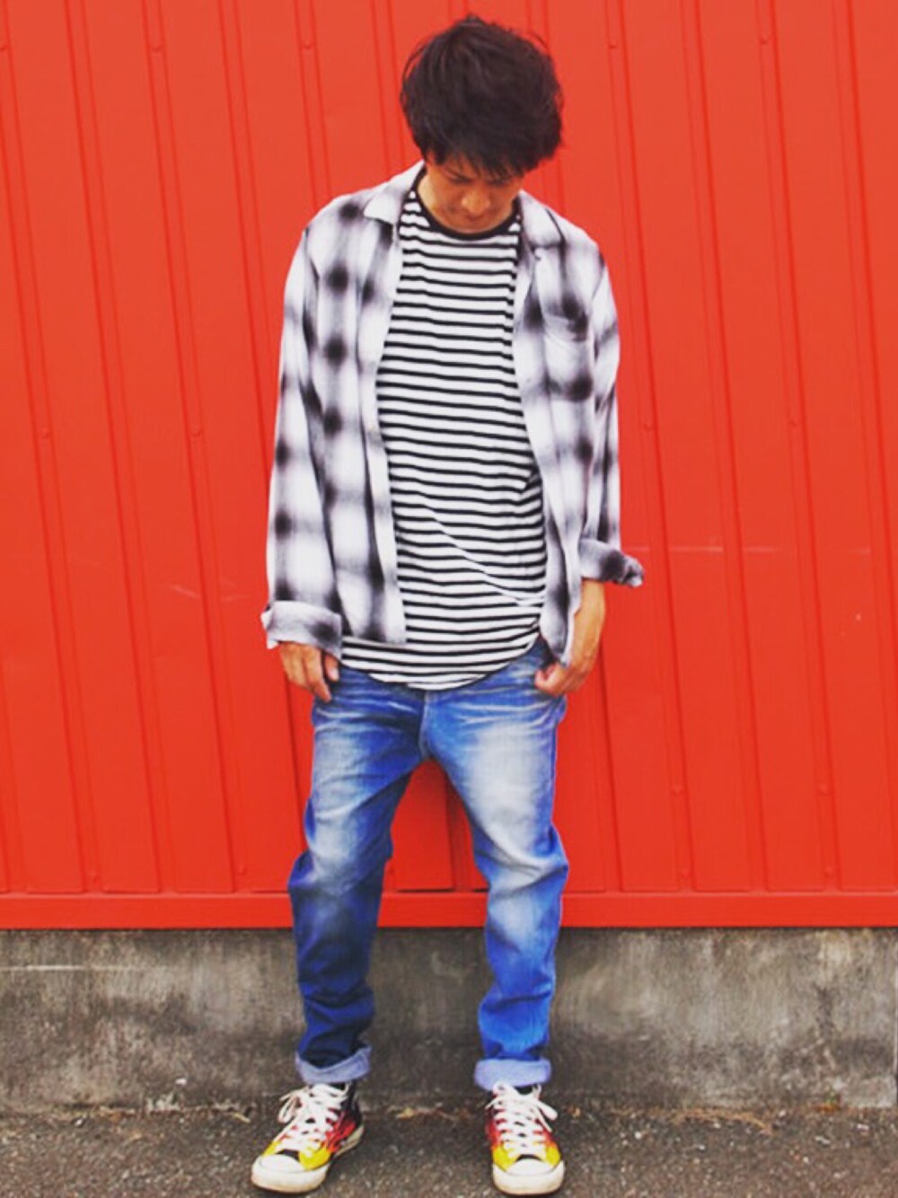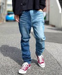 BEATJIVEのデニムパンツ「デニムパンツ メンズ サルエル ワイド&テーパード ストレッチ スキニー ジョガーパンツ ジーンズ ジーパン デニム ツイル コーデュロイ 迷彩」を使ったコーディネート