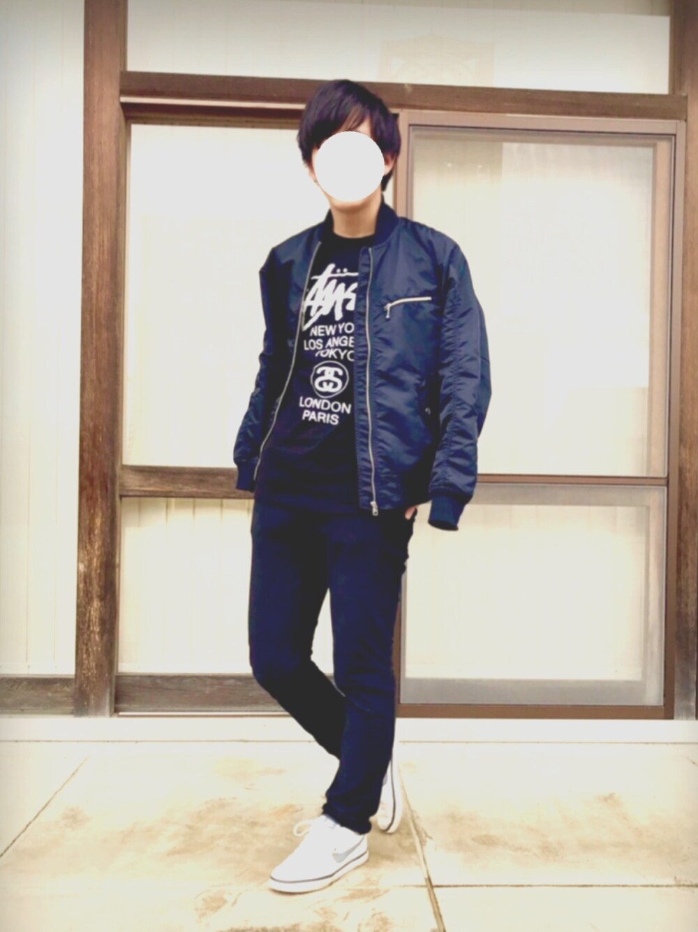 初投稿してみました✌️ これからいろいろな人のコーデを参考にして オシャレを楽しみたいと思います🌟 今回は好きなブランドであるSTUSSY のTシャツを使ってみました 全体的に黒でまとめて 足元で少し目立たせる為に白のスニーカー👟を使ってみました!