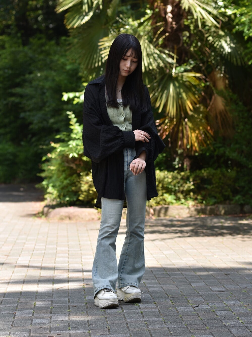 LHMEスタッフのAyaです! コーディネートをご覧いただきありがとうございます。 今回は新作のパールアクセを着けてみました! 《ネックレス》 〜ポイントパールチェーンネックレス/シルバー/サージカルステンレス〜 バロックパールがポイントのネックレス。 長アズキチェーンを使用しているのでカジュアルなスタイルにも合わせやすいです! 《ピアス》 〜チャンキーパールフープピアス/シルバー/サージカルステンレス〜 ボリューム感のあるフープにパールが付いたピアス。 大ぶりなデザインは顔まわりをすっきり見せてくれます! 《ブレスレット》 〜バロックパールブレスレット/シルバー/サージカルステンレス〜 サイズ違いのパールがランダムに連なったブレスレット。 Tバー部分でドレッシーになりすぎず様々なスタイルに馴染みます◎ 《リング(人差し指)》 〜ブランチリング/シルバー/サージカルステンレス〜 木の枝をイメージしたニュアンスリング。 細身なのでボリュームのあるブレスレットを着けた時でもバランスを取りやすいです! 《リング(中指)》 〜スリムプレーンリング/シルバー/サージカルステンレス~ シンプルでプレーンなリング。 今回は2本重ねて少しボリュームをだしました! 【STAFF DATA】 身長:156cm 首周り:31cm 手首周り:14.5cm リングサイズ:11号