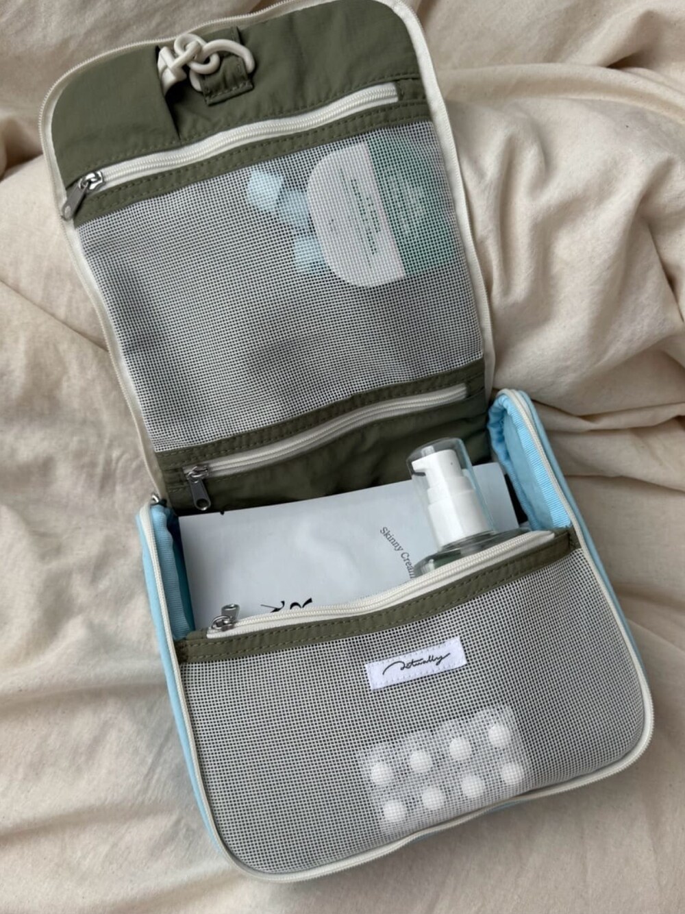 細々したスキンケア系のものたちを スッキリひとつにまとめることができます◎ ポケットや仕切りがたくさんなので、 ごちゃごちゃとすることもなく、 旅先でも使いやすい!! 旅行には欠かせないアイテムです🤍