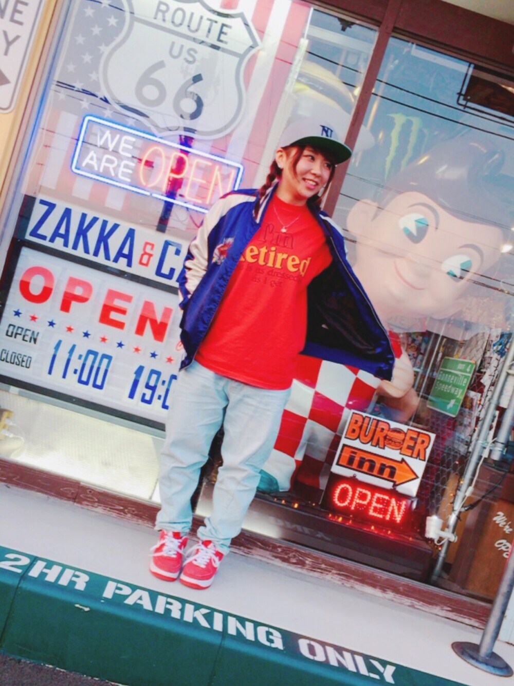 Tシャツはワールドポーターズの雑貨屋さん🇺🇸 古着で大好きな赤に英語、一目惚れしたやつ スカジャンは下北沢の古着屋さん🐲 ズボンはファンキーフルーツ🍓 ちょっとサルエルでダボ 頭にはバンドTHE BONEZのスナップバック👒 靴はいつものナイキっ 👼🏻やっぱりダボ好き👼🏻 👼🏻古着だいすき👼🏻 👼🏻個性出したいなぁっっ👼🏻 ー