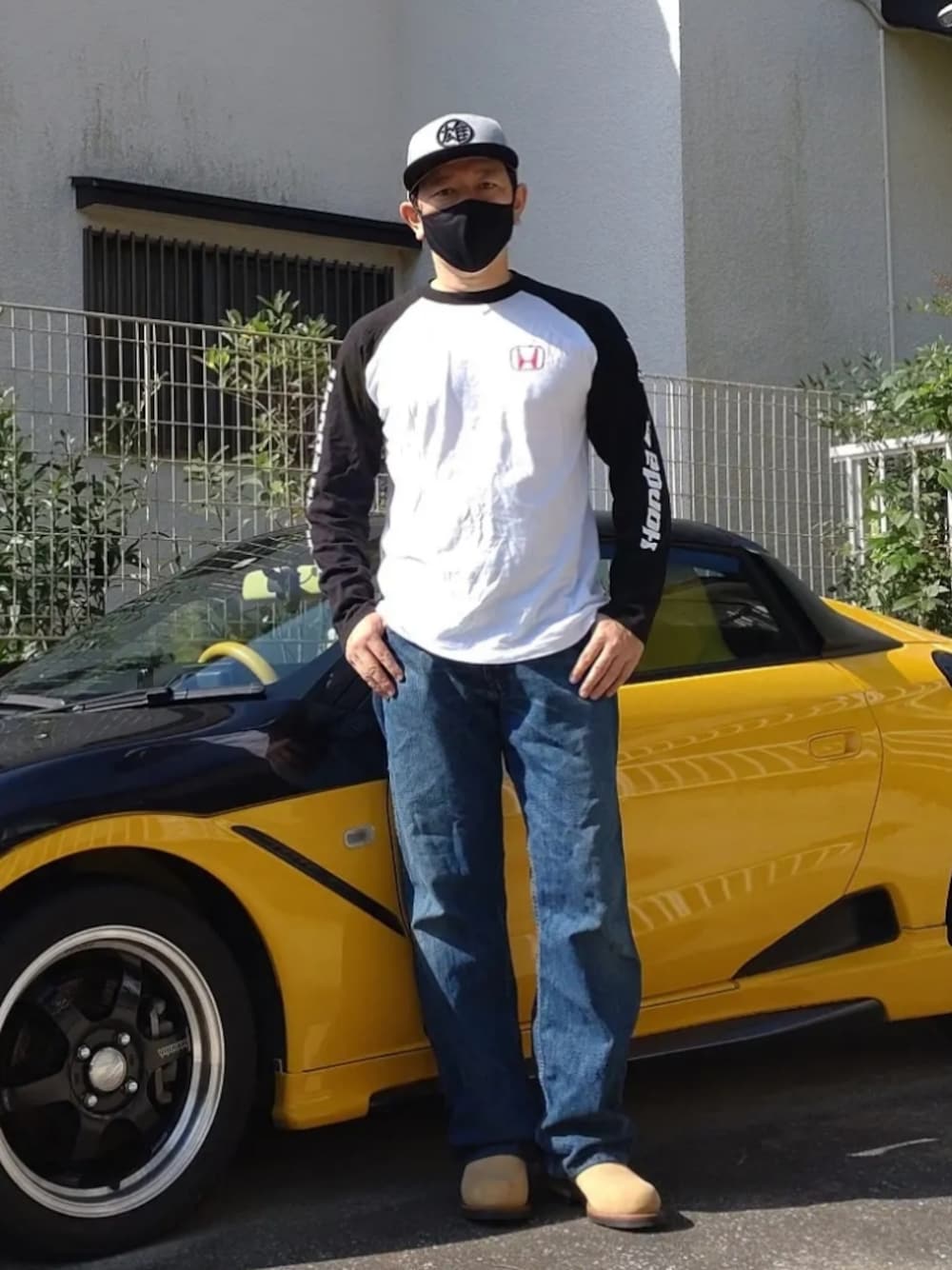 HONDAにHONDA やはり、HONDAの車にはHONDAのロンTを合わせたいところです。 ボトムスは男らしくLevi'sのパンツにREDWINGのブーツを着用。 しかし、直後にHONDAのTシャツを着てTOYOTAの車を運転しました。