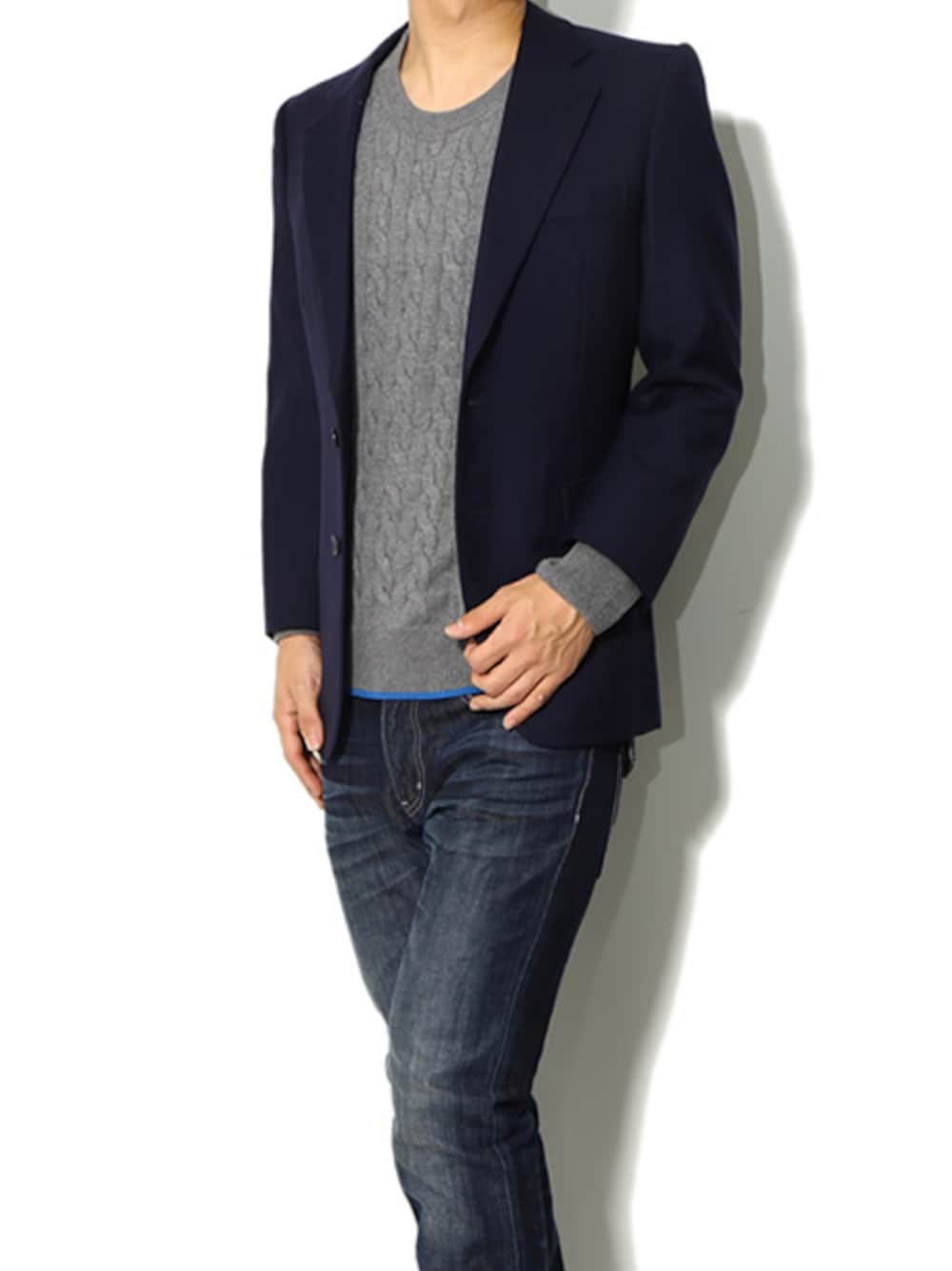 ブランド古着通販BBLSHOPです。 本日はBURBERRY BLACK LABELのテーラードジャケットを使用したコーディネートをご紹介します。 シンプルなジャケットにニットの王道スタイル。デニムパンツでカジュアルに落とし込みローゲージのネットで暖かさもカバーしています。