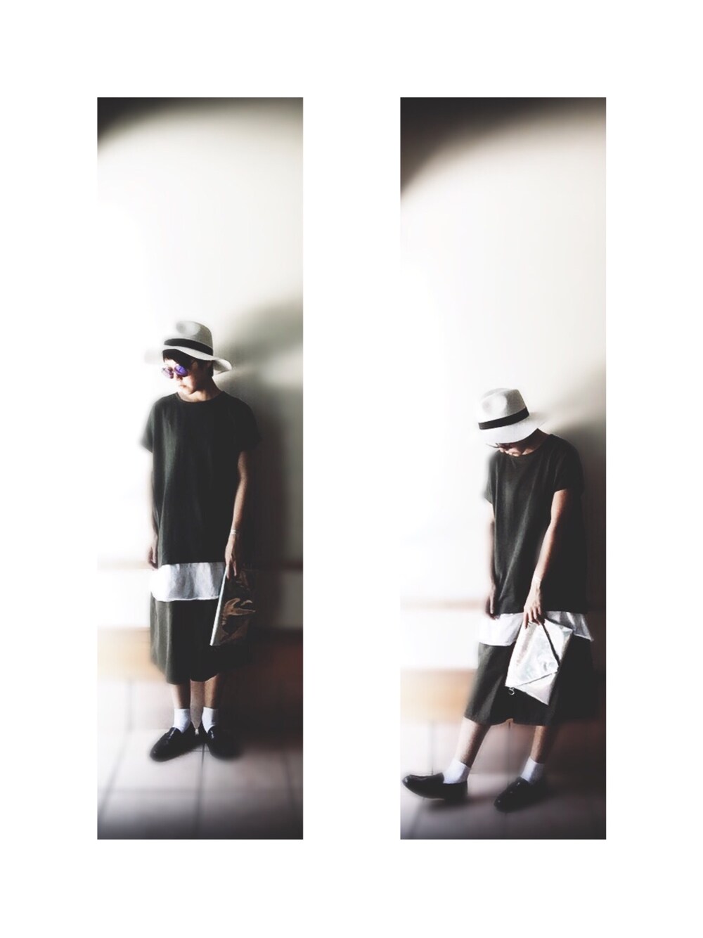 靴は学校のローファー、靴下は中学生のときの白ソックス!✨愛用💜 今流行りの、カーキとホワイトを一対一で!✨ まだ始めたばっかなので、みなさんフォローよろしくお願いします✨(`・ω・´)