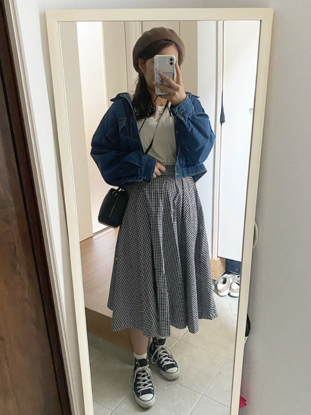 02.28 (月) コーデ えっ2月終わりじゃん!!!今気づいた まだ少し寒いけど、中は半袖着てます🌸 もう春イメージしてます🌸 袖の部分がレースなの可愛いねえ お気に入りのトップスです◎ ギンガムチェックで春っぽく、 デニムとスニーカーでカジュアルに💮 🎧寄り酔い/和ぬか