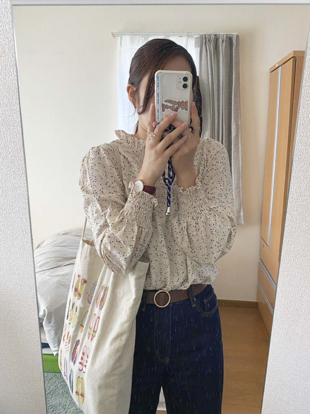 04.09 (土) コーデ 超春コーデ🌸💐🌷🐝笑 入社して初めての一週間が終わった! やっっっとお休み!!🌷嬉しい から花柄のブラウスで春っぽく^^(関係ない) 今日は急遽友達とご飯になったので楽しみꪔ̤̬ 会う友達によって服の系統変えるのあるあるですよね? lisu luluっていう広島の可愛すぎる雑貨屋さん、多分今まで行った中でダントツで1番可愛かった雑貨屋さん、で買ったブラウスとバッグやっぱ可愛すぎるこの組み合わせが好き!息継ぎ 🎧かぼちゃ列車/FOMARE