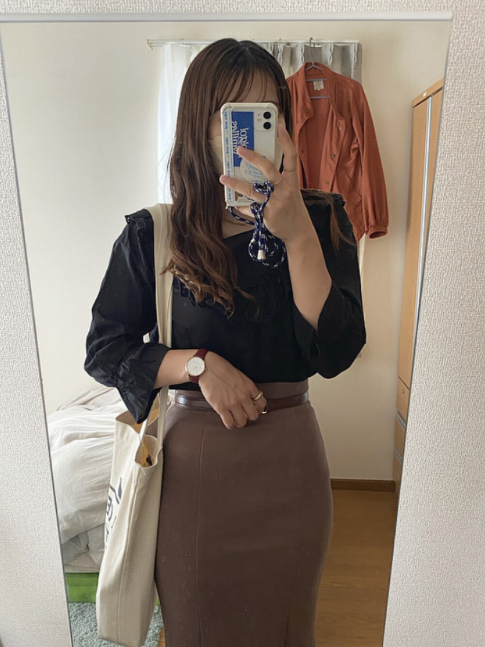05.12 (木) コーデ フリルブラウスは、4年前くらいにehkasopoのセールで🤌🏻♡ フリルでも黒だから甘くなりすぎず◎ 後ろもボタン付いててかわいいー!アイテムのとこ見てみて! ボディラインが出るからな〜って思ってたマーメイドスカート、 やっと履けるくらいになってきたから初おろし🧜🏻♀️♡ 雨だからショートブーツ履きました ̖́- 平日休みなんて滅多にないけど、 残ってる仕事終わらせにスタバ行きます… 🎧表情筋/SUKISHA & kojikoji
