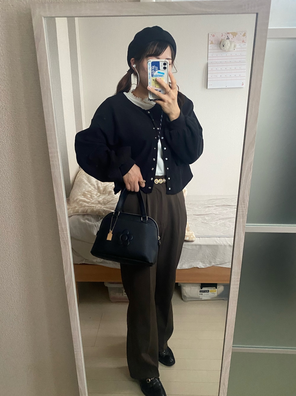 4.15 (土) コーデ 綺麗めな大人っぽい落ち着いたコーデにした❤︎ 二つ結びは子どもっぽさでるけど、コーデが落ち着いてると 上手にカジュアルさ出してくれる気がする 友達にマーメイドスカートもらって着替えたんやけど、 お嬢みが増しました^_^ 🎧待ち遠しいの!/シヴァネコ