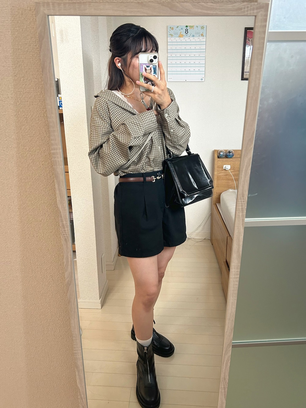 9月になってしまいました🍂 友達と韓国料理食べに行くから、韓国っぽいコーデした日!ごつめのチェルシーブーツがポイント🫰🏻 やっと足を出せるまでに痩せた🕺🏼 秋意識してチェックシャツにしたよ(ˆ •͈ ·̫ •͈ ˆ) ショートパンツはしまむらです〜! 🎧Tinder/アンと私