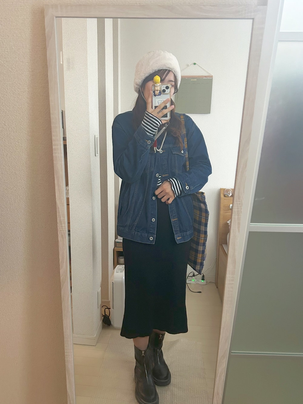 02.23(金) コーデ saucyのLIVE前にスタバで仕事したコーデ🤝🏻 縦ラインにごつめのブーツ! もこもこファーニット帽で抜け感! 🎧二度寝をしようよ/Broken my toybox
