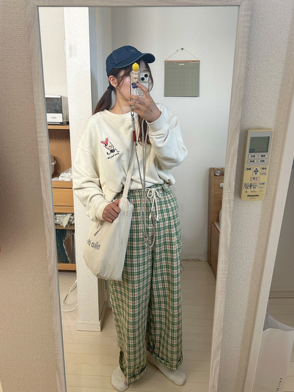 04.17(日) コーデ 意図せずしてほぼ全身niko and...コーデꪔ̤̬ 春だからグリーンのチェックパンツいっぱい履きたい!スウェットはそろそろ片付けないと暑い! 春っぽい色味にデニムを一つ入れるだけでなんかオシャレになる気がする〜 靴下はずっと狙ってたのを友達が誕生日にくれましたテレパシーすごい😳✨バッグタグが良き 今からmoon dropのライブです☺︎ 🎧ぼくのてんし/ケプラ