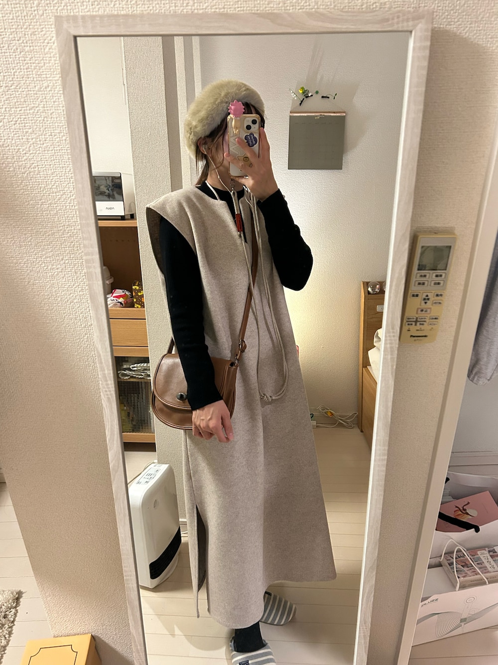 仕事納め!!終わって友達と夜カフェ行ったコーデ☕️ ファーのヘアバンドは10年くらい前に買ったものです… カーキのキルティング合わせが可愛い🫶🏻 🎧ゆめまぼろし/ニイナ
