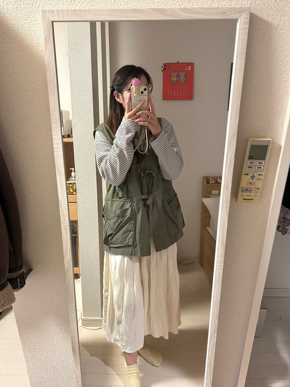 暖かい気温やったけん、ボーダーとカーキのベストでお気に入りコーデꪔ̤̬ ホワイトのスカートはやっぱり春っぽさあって好きやな〜!イエローの靴下でもう完全に春意識🧦 🎧Wall Flower/夜の本気ダンス