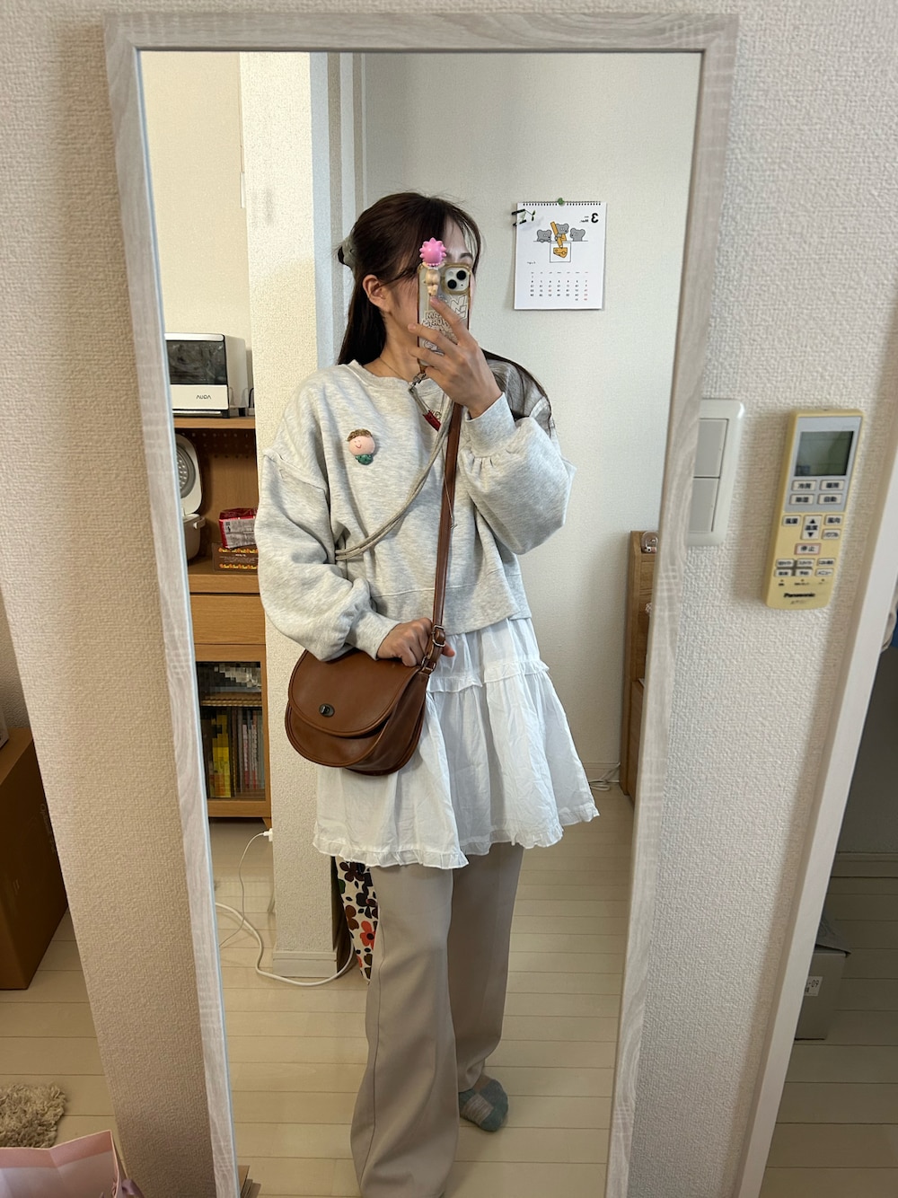 シンプルなコーデやけど、ブローチつけたりレイヤードしたりして可愛く(ˆ •͈ ·̫ •͈ ˆ) 靴は昨日も履いたsamba!使いやすすぎる 🎧星世界航行曲/ハルカミライ