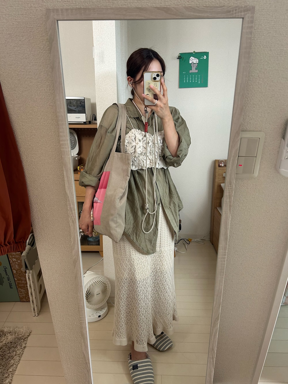 ema ¨̮ のスカート「透かし編みニットスカート」を使ったコーディネート