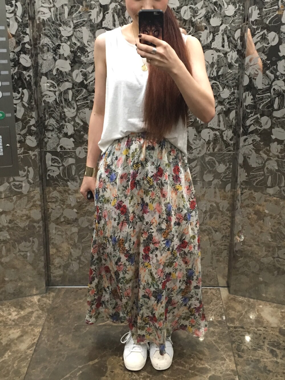 本日。 この前のコーデをスカートに変えただけ。 去年、雑誌に載ってたこのスカート♡一目惚れで店舗に電話してGETしました♡ ギターの練習メインでカラオケ🎸 歌い疲れて顔がヤバかったのでお見せ出来ません✧*ヾ(。>﹏<。)ノ゙✧* あれ…スニーカー汚れてたかな… いや、きっと鏡です。