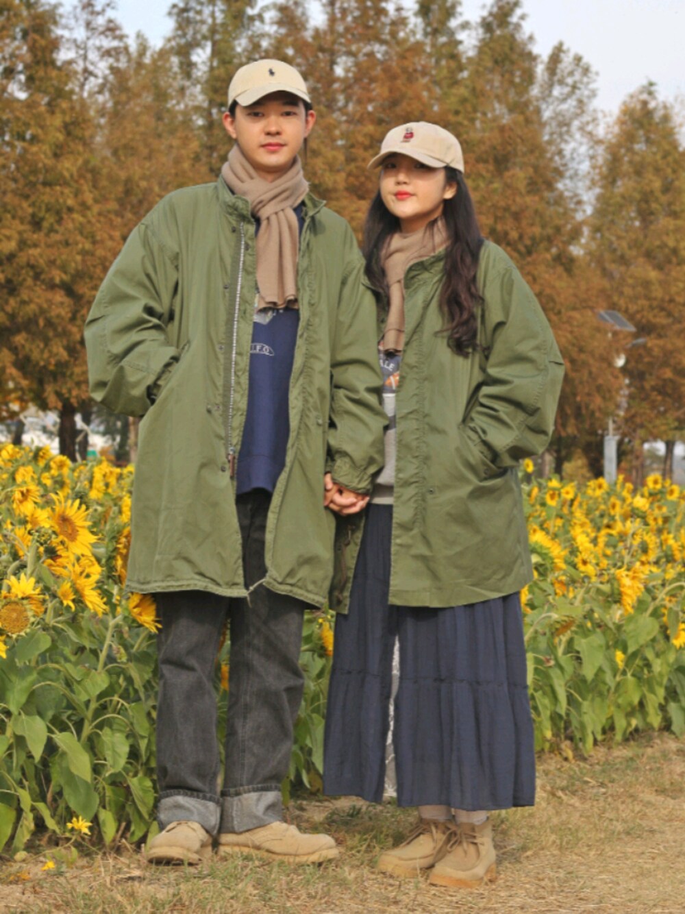 グリーン系のジャケット/アウターを着用したメンズの秋コーディネートの1枚目の写真