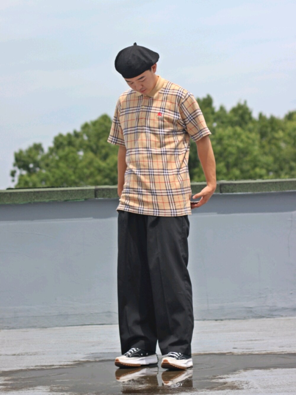 ベージュ系のシャツ/ブラウスを着用したメンズの夏コーディネートの1枚目の写真