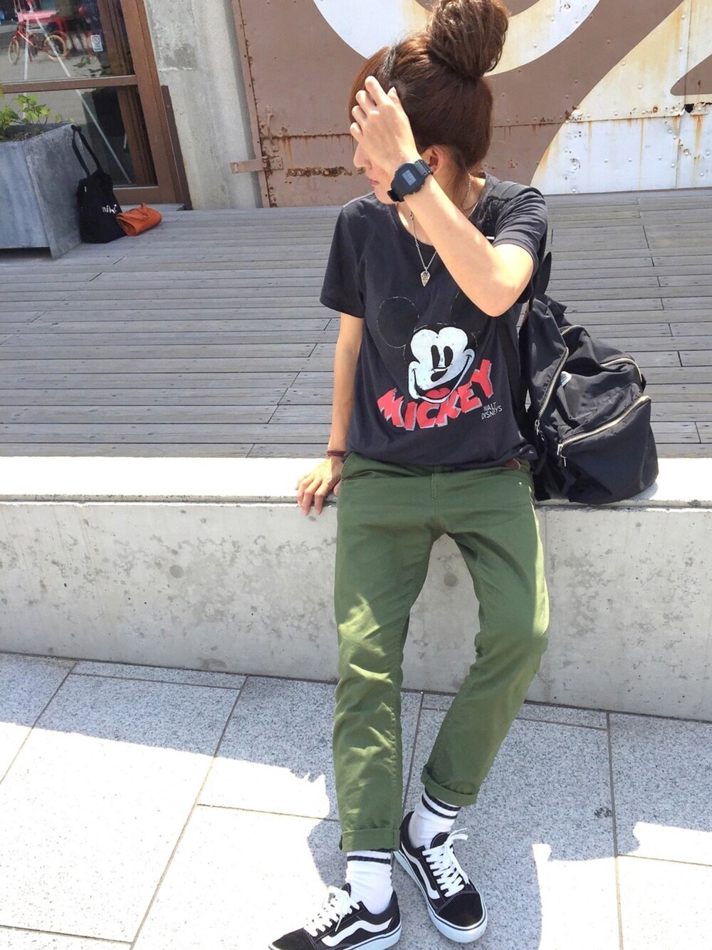 H&MのミッキーT 1300円くらいだったかな... プチプラ〜〜🙌💕 Lサイズで少しゆったり着てます 今日も見ていただき ありがとうございます❤️
