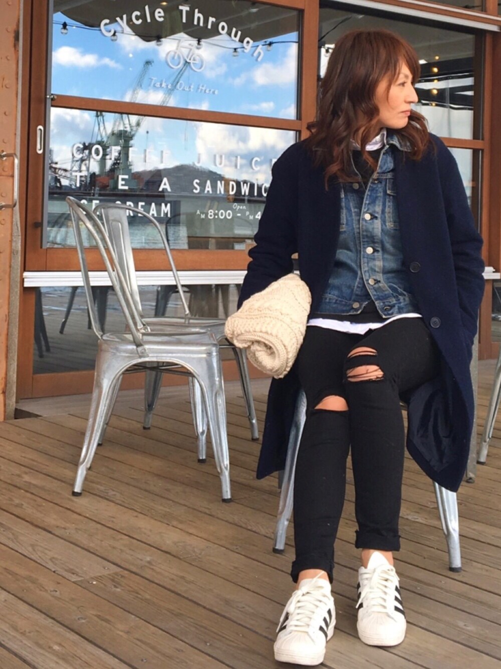 デニムジャケットの レイヤードスタイル 定番アイテムでシンプルに✨ 今日も見て下さって ありがとうございます❤️