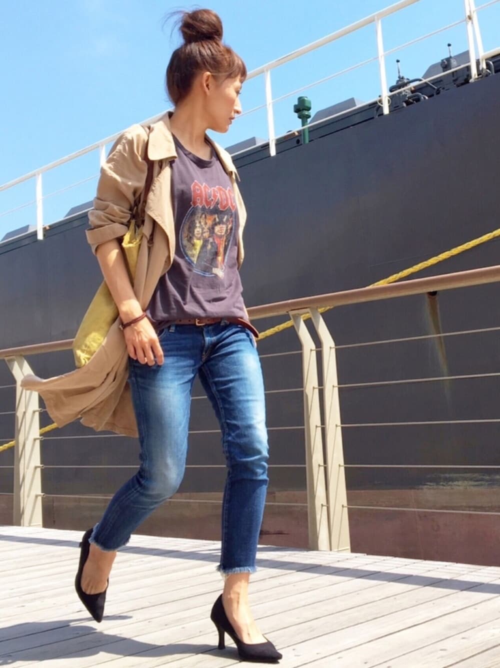最近、購入したロックTを Ungridのトレンチコートと フレイドヘムで合わせました⌣̈⃝♡ 数年前に購入したこのトレンチ テンセル素材で軽くて着心地もシルエットも 全部、お気に入りで長く愛用してます。 新機能のフォルダー 使って下さった方々 本当にありがとうございます🙇♡ 感謝 今日も見てくださり ありがとうございます❤️