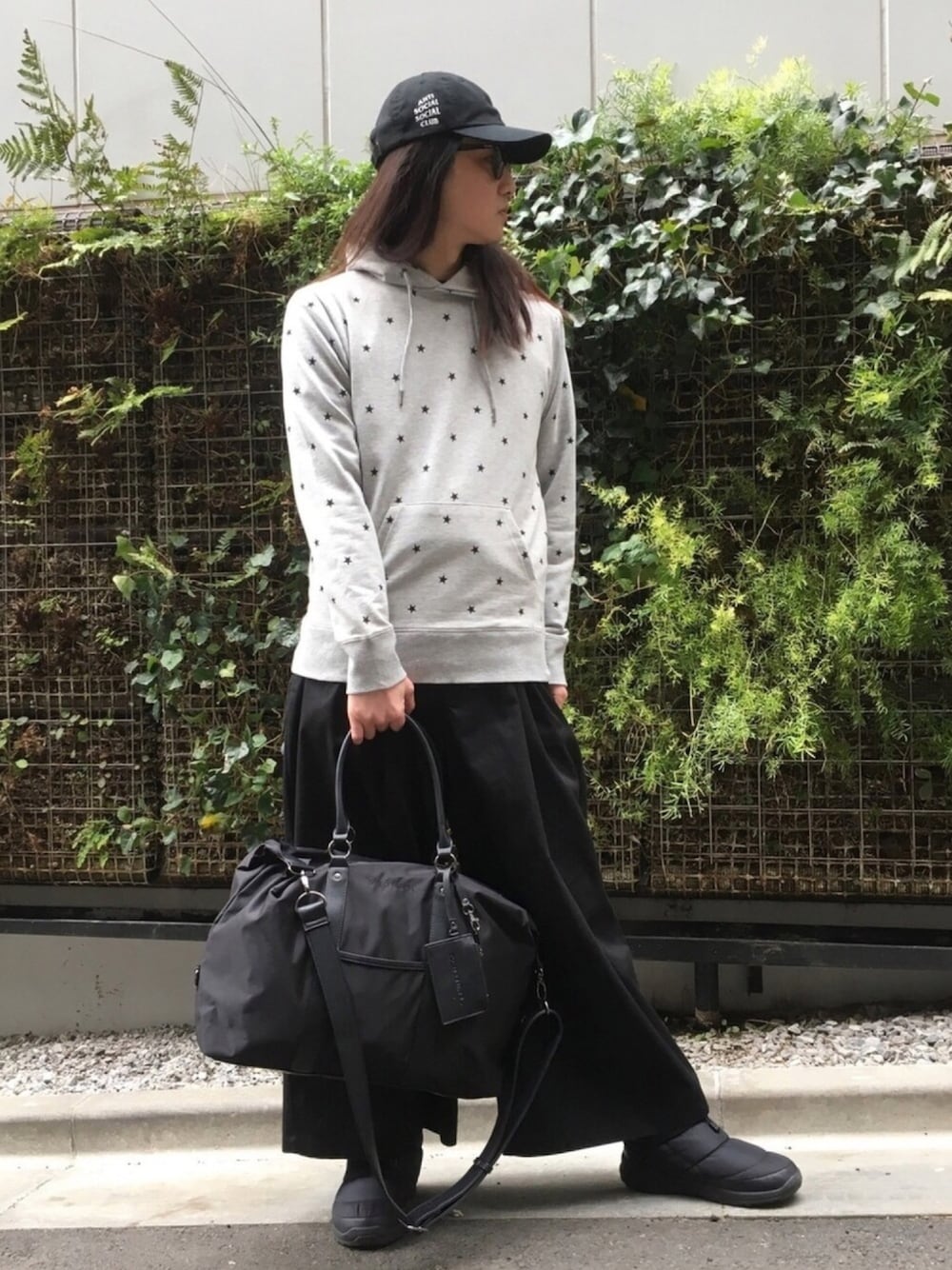 こんにちわ♪ 今日は春のお出かけコーデです🏙 スター総柄パーカーとゆったりパンツでAラインのシルエットにしてみました♪ ラフなお出かけにぴったりです♪ バックも容量あって、1.2泊の軽い旅行くらいならサッとこれだけで行けちゃいます❗️