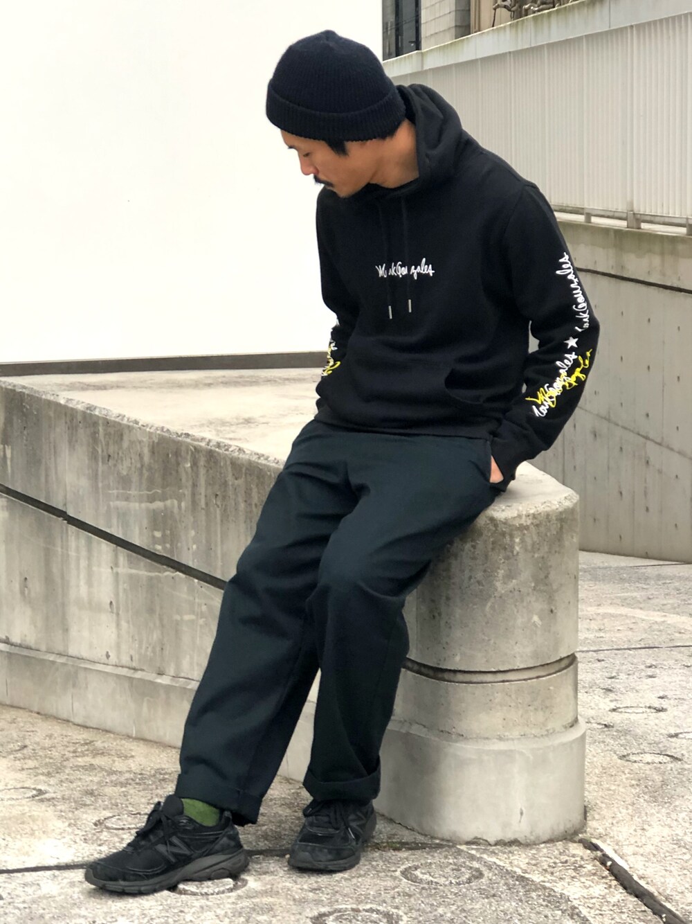 今日のコーデ オールブラックにマークゴンザレスのパーカーでストリート感のある雰囲気に