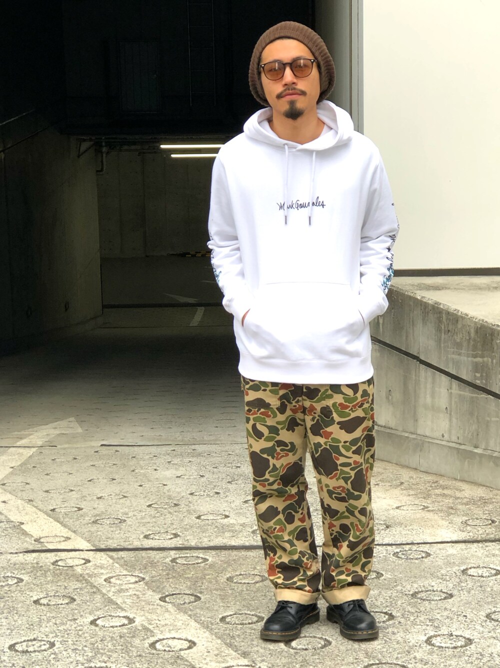 masaのパーカー「【WEB限定】マークゴンザレス別注 袖ロゴ プルパーカー」を使ったコーディネート