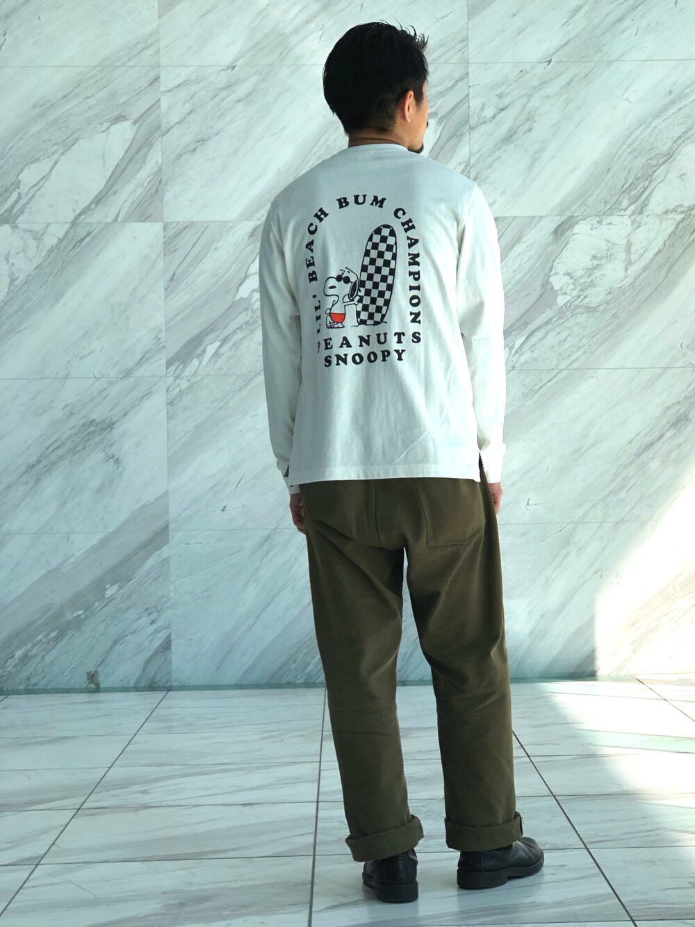 masaのTシャツ/カットソー「【WEB限定】 ピーナッツ 別注 JOECOOL スヌーピー サーフ バックプリント Tシャツ」を使ったコーディネート