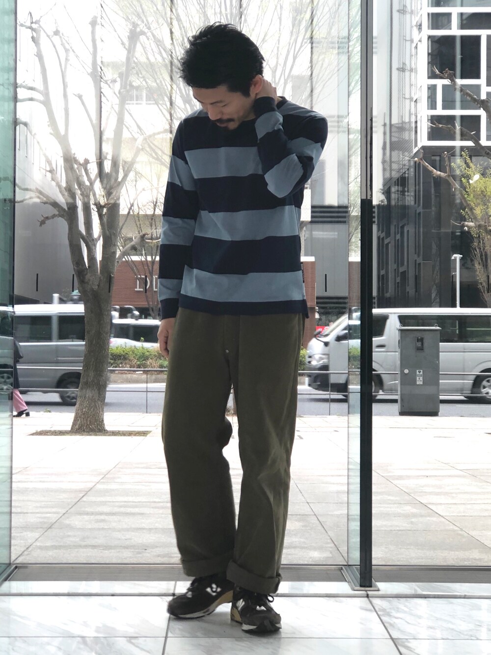 今日のコーデ 爽やかな配色が春らしいボーダーのコーディネートです。 シンプルにカーキのワイドパンツを合わせました。 意外とない配色のボーダーはオススメのアイテムです。