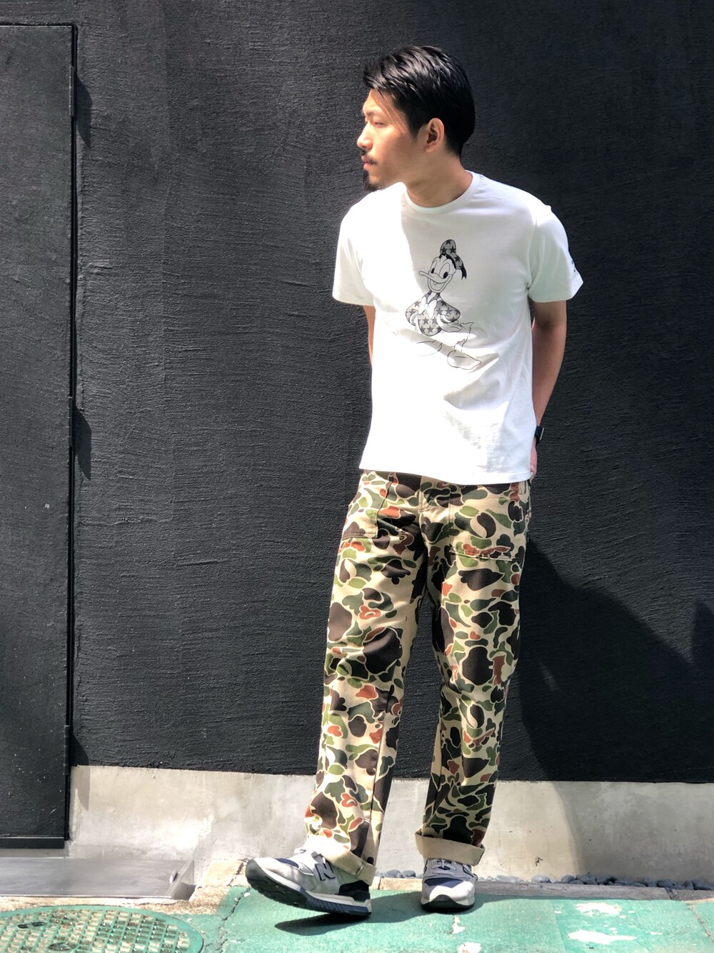 今日のコーデ ドナルドのグラフィックが可愛いTシャツを主軸にスタイリング。